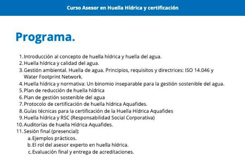 Curso-Mentoría Asesor experto de Huella Hídrica Aquafides· Septiembre 2025 · Edición con Carnet Profesional Oficial