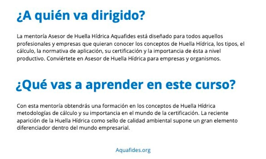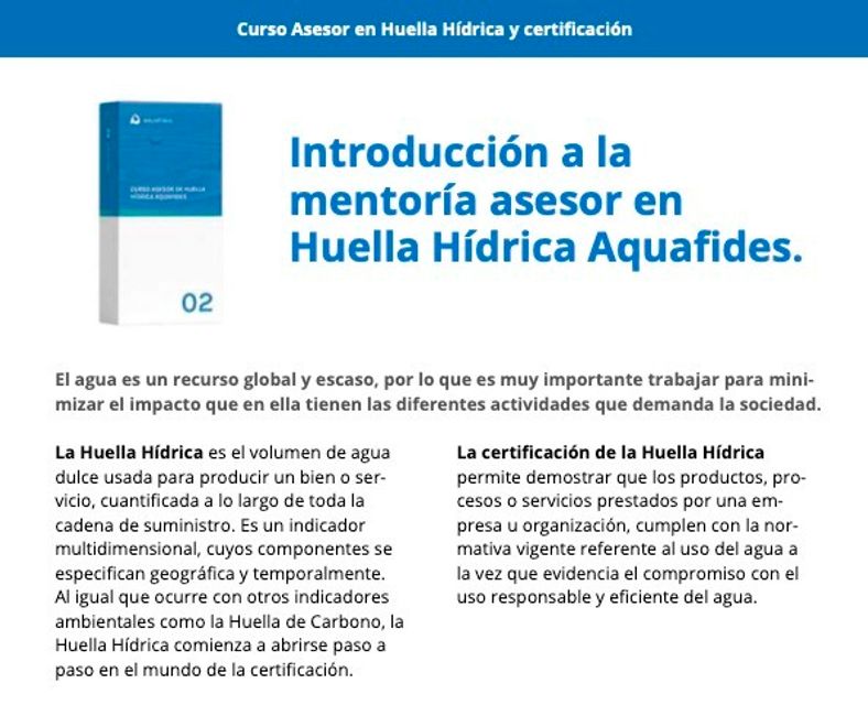¡No pierdas la oportunidad de participar en el Curso Mentoría de Asesor Experto en Huella Hídrica de Aquafides